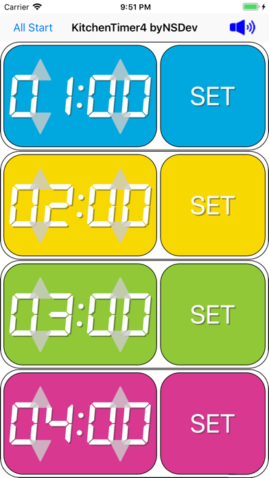 It is an application that only four kitchen timers are arranged. It is a very easy-to-use timer that can be used with intuition.