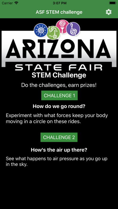 This app includes data-verified STEM challenges intended to be used in the context of the fairs with amusement park rides. Two challenges are included that will be a part of a scavenger hunt throughout the Arizona State fairgrounds, but is useful for home experimentation as well: (1) use the accelerometer to determine the direction of force that causes you to move in a circle on rides, and (2) use the barometer to understand how air pressure changes as you go up and down on rides. The app is intended for adults, adolescents, and children ages 6+ with their families, and was developed as the result of an initiative between the Arizona State Fair, Arizona Sci Tech, and Vieyra Software.
