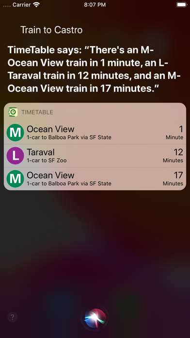 TimeTable offers quick access to Muni predictions throughout the city of San Francisco in a beautiful, easy-to-read format. Features: • Lightning fast access to Muni train, bus, streetcar, and cable car predictions • Today Extension for predictions on your lock screen • Siri Shortcuts support. Just configure a shortcut in the Shortcuts app, then ask Siri when the next N-Judah will arrive. • Up-to-date delay information