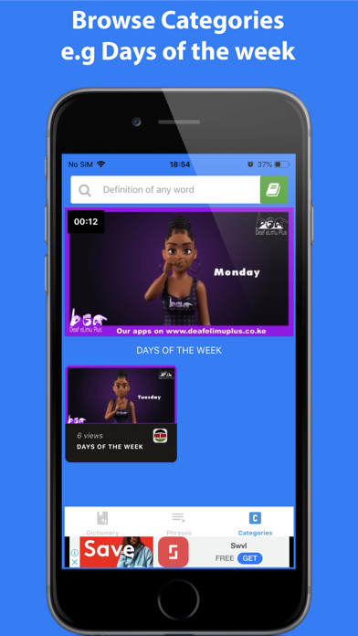 The first app for both English and Kenyan Sign language dictionary. It has a built-in English Dictionary that enables you to look up the definition of any word in English quickly. Also, you can browse the list of videos to learn Kenyan sign language from a list of words, phrases, and categories. Features:- - Lookup the meaning of any word in English - Browse through the list of signed videos to play and learn sign language. - Vocabulary - Categories e.g. days of the week, family, number in sign language. - Stay tuned: More features are coming soon! This app requires a data connection or WiFi to access all video content.