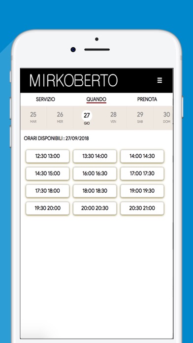 Mirkoberto ha creato per i propri amati clienti l'innovativa app che permette di: * visualizzare tutti i trattamenti disponibili, con i dettagli dei trattamenti * prenotare GRATUITAMENTE e 24 ore su 24, i tuoi trattamenti evitando inutili e ripetute chiamate telefoniche * scegliere, in fase di prenotazione, il tuo operatore preferito, se ne hai uno * visualizzare gli orari ed i giorni di apertura, aggiornati ogni giorno * ricevere, tramite notifiche Push, promozioni dedicate ai clienti possessori dell'app * rimanere aggiornato riguardo le ultime tendenze di hairstyle Tutto questo e Molto altro, in un'unica app! Mirkoberto!