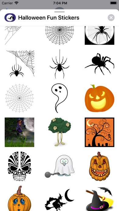 Over 200 fun stickers for Halloween!! • Jack-O-Lanterns! • Black cats! • Ghosts! • Witches on brooms! • Full Moon! • Bats! • Pumpkins! • Witches Hat! • Zombies! • Spooky Trees! ..and much more!! The screenshots don't show everything.