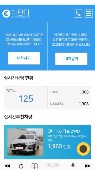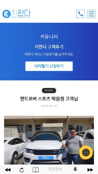 정직한 거래를 바탕으로 출발하는 "차판다" 현대 중고차 시장은 잘못된 인식과 시선으로 고객님께 신뢰와 믿음을 잃어가고 있습니다. 정직하고 투명한 중고차 시장을 위해서 차판다가 앞장서서 출발합니다. # 소중한 내 차 떠나보낼때 - 번거롭고 까다로운 내차팔기,차판다가 더욱 쉽고 간편하게 도와드리겠습니다. - 전국 매입 전문 카매니저의 경쟁입찰 방식으로 최고가 견적 제공! - 비교견적으로 발품없이 간편하게 내 차 견적확인 및 판매할 수 있습니다. # 확실히 내 차 구입할때 - 더 이상 허위매물 미끼상품으로 고생은 그만! - 엄격하게 중고차 선별과정을 통해 인증된 중고차를 추천해드립니다. - 전국에 실시간으로 등록된 실매물을 가장 효율적으로 안내받으실 수 있습니다. # 같이 만들어가는 꿈과 희망 - 차판다는 365일 24시간 언제 어디서든 쉽고 빠르게 중고차 정보를 얻을 수 있습니다. - 베테랑 전문 상담원과 1:1 상담을 통해서 궁굼한점은 무엇이든 물어보세요 - 알뜰하게 사고 팔수있는 중고차 맞춤서비스를 제공합니다. 홈페이지 : http://www.car-panda.co.kr