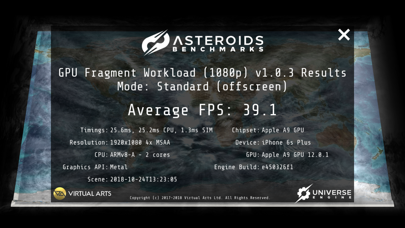 Meteor Shower is a suite of micro benchmarks that measure CPU and GPU performance. It is for games and apps developers to understand the performance of their device with different types of workload and learn how to optimize their game so that it can run smoothly. The Benchmark Modes allow you to measure the performance of the CPU and GPU of your mobile device: • CPU Parallel Workload – Multiple character animations with multi-threaded skinning. Rendering to a small offscreen framebuffer, to limit the GPU fragment workload. • GPU Driver Draw Call Workload – 6000 draw calls with simple geometry. Rendering to a small offscreen framebuffer, to limit the GPU fragment workload. • GPU Vertex Workload (Visible) – 1M triangles in view. Rendering to a small offscreen framebuffer, to limit the GPU fragment workload. • GPU Vertex Workload (Culling) – 1M triangles, mostly culled. Rendering to a small offscreen framebuffer, to limit the GPU fragment workload. • GPU Fragment Workload – Multiple layers of clouds using a complex fragment shader. Rendering to a configurable offscreen framebuffer without v-sync. TECHNICAL FEATURES • Metal API • Multi-threaded for multi-core devices • Forward Rendering • C++14 compiled for ARMv8-A • Rendering at native resolution with MSAA • Offscreen Rendering at a configurable resolution • ASTC textures BENCHMARK YOUR DEVICE Meteor Shower enables performance measurement of mobile devices using CPU and GPU targeted performance metrics. This version has been built with the Universe engine using Metal and multithreading. Once finished the benchmarks display information about your device and provide performance measurements. MEASURE YOUR PERFORMANCE At the end of each benchmark, you will be presented with a full report of your device and its performance. The report contains: • Average FPS (Frames Per Second) • Resolution • Chipset • CPU • GPU GET IN-DEPTH ANALYSIS Meteor Shower is able to provide in-depth technical performance metrics to give you the data you need to understand how your phone and tablet devices stand up over the course of the benchmark. See detailed charts, lists, rankings and unlock the knowledge you need on our website Asteroidsbenchmarks.com • Frame Rate • Pixel Rate • CPU Rate • Timeline Charts • CPU & GPU Frame Times COMPARE YOUR DEVICE All devices are displayed in the order of performance on our website at asteroidsbenchmarks.com. You’ll be able to compare your device with the other devices ranked. See peak performance and spot performance drops during the timeline of the benchmark for any device. Understand which devices are at the top of their game! SCORES, DETAILED CHARTS, LISTS, RANKINGS AND MORE All available via the Asteroids Benchmarks website: asteroidsbenchmarks.com