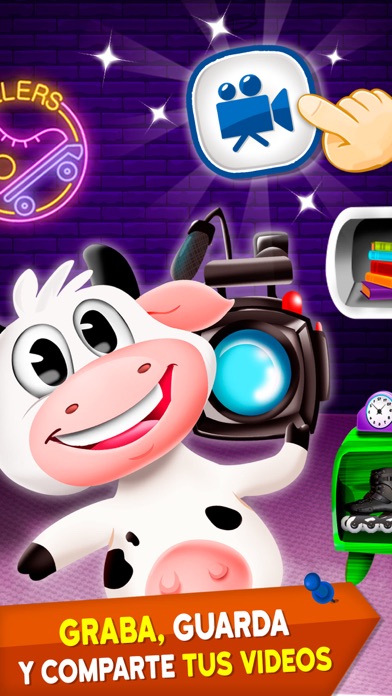 Talking Vaca Lola, una aplicación donde podrás disfrutar con nuestros personajes de la granja y sus divertidas reacciones. Habla con la Vaca Lola, ve al gimnasio con ella, ejercítate en la caminadora, disfruta de un día a día con esta tierna vaquita, báñala, baila, salta en el trampolín, aprende el abecedario con Vaca Lola, juega con sus peluches de la granja y acompáñala a dormir. Descubre su entorno por medio de la divertida realidad aumentada, que te permite explorar cada espacio de la granja, correr con los personajes y escapar del toro. Haz que los arboles crezcan, disfruta del sonido de la cascada o fuente de agua, y admira las lindas mariposas que rodean a la Vaca Lola en la granja. Para disfrutar de la realidad aumentada, descarga la hoja con el dibujo de la Vaca Lola, tal como se te indicará paso a paso en nuestra aplicación. Si el burro o el caballo también son tus personajes favoritos, puedes jugar con ellos y realizar todas las actividades que harías con Lola. Puedes hablar con cada uno y disfrutar de las diferentes actividades. CARACTERÍSTICAS -Con Talking Vaca Lola puedes grabar y compartir los momentos mas divertidos con tus amigos en redes sociales. -Talking Lola cuenta con 5 escenarios. (sala, baño, habitación, patio y gimnasio) -Podras jugar con los amigos de la granja, Burro y Caballo, consigue monedas y adquierelos. - Lola in the Sky, el minijuego donde saltarás con la Vaca Lola, subiendo de niveles sin dejarte caer, entre más avances en el cielo, más monedas tendrás para obtener a tus amigos de la granja. -Cuéntale a la Vaca Lola y demás personajes tus chistes, anécdotas, ponlos a cantar tus canciones favoritas y por medio de ellos, saluda a tus amigos, todo lo que digas, será repetido por nuestros maravillosos personajes de la granja. - Vive emociones reales con la Vaca Lola y demás personajes de la granja, podrás ser parte de su alegría, sus necesidades, flatulencias y su adrenalina al saltar, correr o ejercitarse, en los distintos escenarios y el minijuego. - Utiliza la ducha, el inodoro, el televisor, prende y apaga la luz de la habitación en donde descansa la vaca Lola y nuestros demás personajes de la granja, despiértalos con el estallido del globo y descubre sus peluches en los cajones de la mesa ubicada en la sala, asimismo apréndete el abecedario, disponible en el televisor.