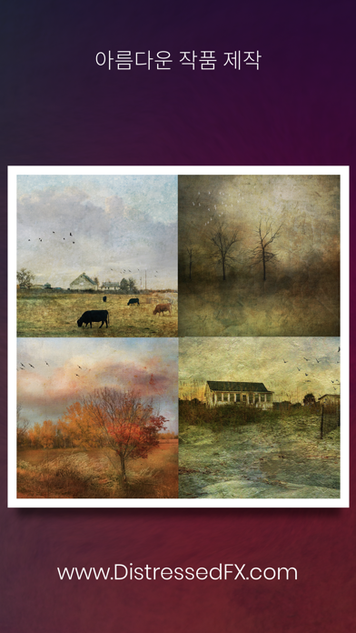 Distressed FX Plus는 많은 찬사를 받은 원작의 스페셜 에디션입니다. 얼마 안 되는 결제 단 한번으로, 현재와 차후 출시될 모든 필터는 물론, 오리지널 앱 출시 전에 모든 새로운 효과와 기능을 먼저 이용할 수 있습니다. Distressed FX의 놀라운 효과를 입수할 수 있는 특별한 기회입니다. 사진을 한차원 높게 끌어올릴 준비가 되었다면, 이번 행사에서 최적의 투자를 해보세요. 사진으로 멋진 예술 작품을 손쉽게 만들어 보세요! 오래된 사진 FX로 사진을 찍은 다음, 다양한 질감을 가진 이미지와 오버레이를 선택하세요. 가장 평범한 사진도 순식간에 예술 작품으로 승화됩니다. 정물 또는 풍경 사진에 특히 적합한 앱으로, 기존 사진 앱의 부족한 점을 완벽하게 보완합니다. 오래된 사진 FX는 미국 테네시 주의 텍스처 아티스트인 Cheryl Tarrant의 텍스처를 이용합니다. 이제 언제 어디서나 그녀의 인기 있고 독특한 스타일을 손쉽게 활용할 수 있습니다. Instagram에서 Cheryl 팔로우하기 http://instagram.com/distressedfxapp Instagram에서 #distressedFX 해시태그로 9만 개 이상의 작품을 확인해 보세요!