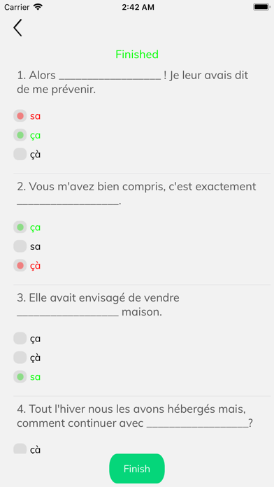 Learn French” is an application with more than 10.000 multiple- choice exercises- For all learning levels in French. +Level A1: with more than 4.000 multiple- choice exercises. +Level A2: with more than 2.000 multiple- choice exercises. +Level B1 : with more than 1.500 multiple- choice exercises. +Level B2 : with more than 1000 classified grammar exercises. + more than 6.000 multiple- choice exercises for popular grammar structures in French. Beside, you can send request to our French Teachers for exercises, we will update for you within 1 week. L'application d’apprentissage du français comprend plus de 8.000 exercices de français à choix multiples pour tous les niveaux, selon les normes internationales: Niveau A1, Niveau A2, Niveau B1, Niveau B2. En outre, il existe également des formes d'exercices classées par la structure grammaticale: les articles, les adjectifs, les adverbes, les modes et temps des verbes,… S’il y a n’importe quelle faute quand vous utilisez cette application, écrivez-nous un email à [email protected]. Nous allons les corriger sous 24 heures.