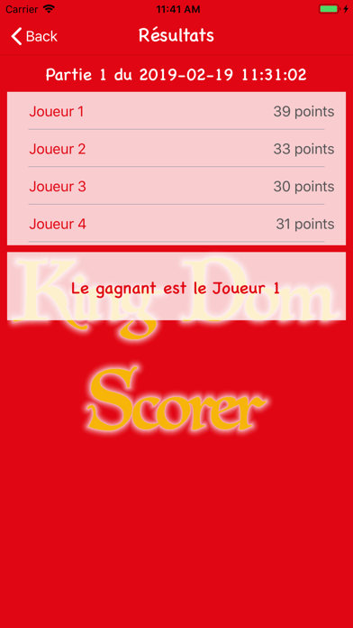 A l'aide de King Dom Scorer vous pourrez en fin de partie : - comptabiliser vos points (champs de blé, mers (ou lacs), mines, prairies ou encore forêts ou marécages) - sauvegarder simplement vos parties (de 2 à 4 joueurs) - et ainsi déterminer facilement le vainqueur. N'hésitez pas à me transmettre vos remarques d'améliorations.