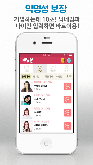 남친 여친 채팅 인연을 만들 수 있는 채팅몬 S 채팅몬은 개인정보 없이 간단하게 가입할 수 있으며, 채팅 목록에서 거리가 가까운 상대방에게 쪽지를 보내어 즐거운 만남을 할 수 있습니다. 즐거운 무료채팅 랜덤채팅은 채팅몬