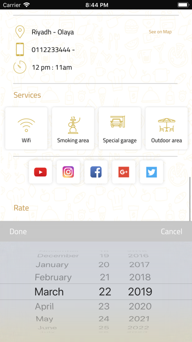 تطبيق حجز مطاعم وكافيهات بادر بحجز مكانك الان من خلال جوالك اختر المنطقة قم باختيار المنطقة المراد البحث عن مطعم او كافية بها تصفح المطاعم والكافيهات تصفح المطاعم و الكافيهات بالمنطقة ومن ثم الاختيار احجز طاولة الان قم بحجز طاولة و تأكيد الطلبات مباشرة من خلال تطبيق الجوال الخاص بك شكراً لك قم بتقييم الخدمة من خلال شاشة التقييم وسنكون سعداء بزيارتك مره اخري لنا