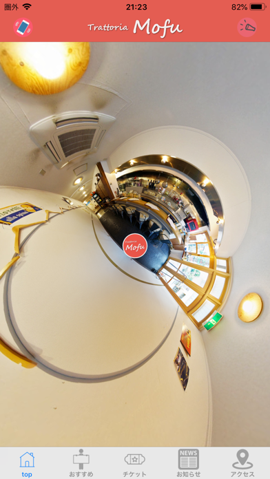 Trattoria Mofuアプリは、千葉県柏市中央2丁目1-5にあるイタリアン「Trattoria Mofu」の公式アプリです。 360度パノラマ画像でのお店の内観の閲覧や、お店へのアクセスなどの店舗情報の確認、またお得な情報などの最新のお知らせを確認することができるアプリケーションです。 ダウンロードしていただいた方だけに、特別なチケットを発行しております。 お楽しみにしてください。