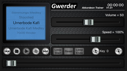 Lite Version welche nur 20 Sekunden spielt. Mit dieser App können Sie die Musik um bis zu 50% langsamer abspielen, um die schwierigen Passagen besser lernen zu können. Auch lässt sich die Tonart ändern. Dank neuartiger Technologie können Sie das Tempo ändern ohne die Tonhöhe zu beeinflussen. Und wenn Sie die Tonart ändern wird wiederum die Geschwindigkeit nicht beeinflusst. Mit der Recorder Funktion von Ihrem iOS Gerät können Sie den Musiklehrer gleich vorspielen lassen und Zuhause das ganze in einer "gemächlichen" Geschwindigkeit abspielen lassen, ganz nach Ihrem Tempo. Möchten Sie eine bestimmte Sequenz üben, können Sie ganz einfach mit Loop Start und Loop Ende den Bereich wählen, welcher immer wiederholt wird bis Sie es beenden.