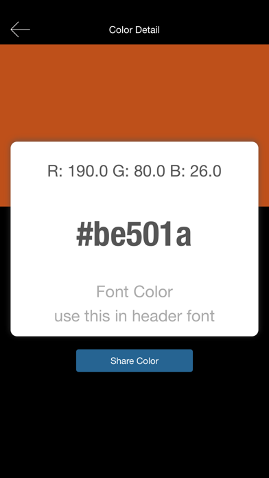 Color Picker provides pick the color from image or camera. - Pick Color from Live Camera - Pick Color from Photos with Maximum zoom - Pick Color from Digital Color Meter (RGB) - Save picked Color Easily - Share picked Color Quickly Color Picker App helps to pick color for your website theme or logo. Pick Color... Save Color... Share Color... Easy & Quick...