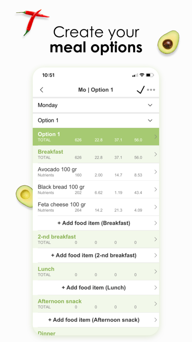 Follow personal ready meal plans, built for you by nutritionists, based on your body parameters, activity level, and fitness objectives. Get on track with eating healthy and achieving your fitness goals with Diet plans. You can follow daily meal plans, offered by the app as it is. Or customize the diet by creating your plan according to what you like. The app offers a large database of food items with nutrition information you can choose from. It automatically calculates nutrients for each meal intake to help you stay on track. With Diet plans you can: Access diet plans built by fitness and nutrition specialists; Follow personal ready-to-go plans, based on your gender, weight, physical activity level and goals such as: - intense weight loss or weight gain; - comfortable weight loss or weight gain; - healthy eating support. Create and customize your diet plan day by day using an extensive database of food items; Get access to several options of food intake for each type of meal with the full version of the app. Calorie counter makes your daily meal planning even better: - We provide You with the daily amount of calories – track your caloric intake with split into the automatically calculated macros to hit your daily goal; - Log the meals and foods that you cook. Large food database allows for tracking of everything that you eat throughout a day. Choosing groceries is no longer a challenge– our Shopping list does the job for you making the shopping process nice and quick: - The list is ready for you – it automatically gathers the foods used in meals of your personal diet plan; - Shopping in advance? Check the shopping list for a particular day, several days or a week ahead; - Food items color palette and titles suggest the necessary aisle in a grocery store, accelerating shopping; - Correct the shopping list depending on your ability to obtain one or another item (e.g., remove the avocado if you aren’t able to buy it). Daily meal planning routine has never been easier! You can pay for the Diet subscription and get the full features of the app. Monthly Diet auto-renewable subscription costs $4.99 per month. Yearly Diet subscription costs $47.99 per year. Payment will be charged to your iTunes Account at confirmation of purchase. Monthly subscription automatically renews unless auto-renew is turned off at least 24-hours before the end of the current period. Your account will be charged for renewal within 24-hours prior to the end of the current period, and identify the cost of the renewal. Subscriptions may be managed by the user and auto-renewal may be turned off by going to the user's Account Settings after purchase. No cancellation of the current subscription is allowed during active subscription period. Any unused portion of a free trial period, if offered, will be forfeited when the user purchases a subscription to that publication. Terms of use: https://docs.google.com/document/d/e/2PACX-1vTPoTWwm7CW9493c9IthESl1qM4CQirmv7FZmUu1DbF93-7-BIA7JLfNYPXJT12CdtfRPQPv8uSWW_Y/pub