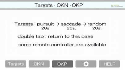 VOG(ビデオ眼振図)用の視標を表示するアプリです。 追跡眼球運動検査用、急速眼球運動検査用の視標は、白い画面に赤丸で、その指標が移動します。視標の動きは、pursuit, saccade, randomの3種類で、各々20秒づつ表示されます。 OKN、OKP検査用の視標は、縦の帯が左右に流れて表示されます。設定画面から、流れる速度、方向などを変更できます。