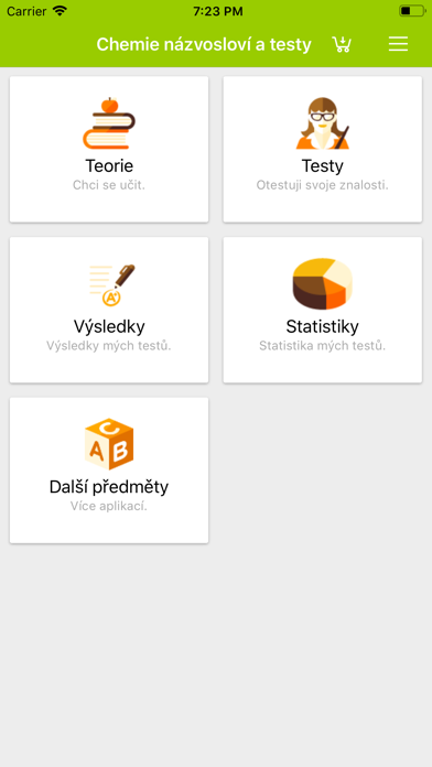 V aplikaci najdete teorii a především testy na prvky Periodicke soustavy prvků, vzorce a názvy oxidů, sulfidů, ditridů, halogenidů, hydroxidů a bezkyslíkatých a kyslíkatých kyselin. Aplikace zaznamenává statistiky a podrobné výsledky testů včetně času a správné odpovědi ke každé otázce. Obsahuje: - PSP - oxidy - sulfidy - kyseliny - hydroxidy - halogenidy - nitridy Nákup v aplikaci: Plná verze: předplatné 59,00 CZK účtované každé 3 měsíce. • Předplatné se automaticky obnovuje 24 hodin před vypršením doby jeho platnosti ve stejné částce, v jaké byla uskutečněna první platba. • Předplatné se hradí sa přes Váš iTunes účet a je možné zrušit ho, nejpozději však 24 hodin před koncem aktuálního předplatného období. • V případě, že je určitá služba poskytována po určitou dobu bezplatně a v jejím průběhu si zakoupíte placenou verzi, ztrácíte nárok na zbývající dny zdarma. Podmínky používání: https://www.holucent.com/eula/ Zásady ochrany soukromí: https://www.holucent.com/privacy-policy/