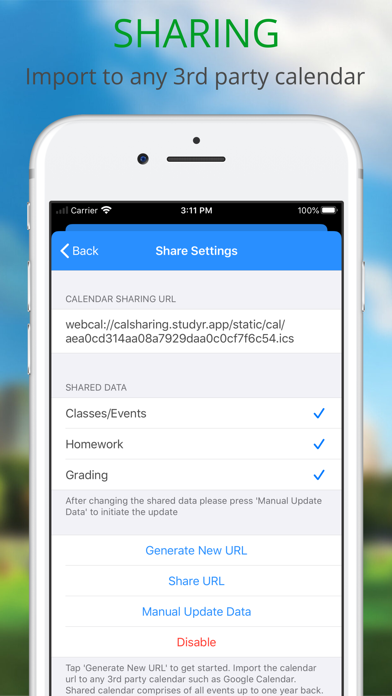 The smart study planner you have been waiting for. Offers everything you need in a school calendar and college organizer. Well suited for any school, college, and university. The homework planner offers the following features: Planner - Enrollment management with terms and courses - Add classes with custom class types for your personalized study schedule - Schedule repetitive and MWF classes - Skip single classes (attendance tracking) and see an overview for each course in your student agenda - Delete single classes when they got canceled Calendar - Month or week overview of your student calendar - Shows all activities (Classes, Homework, and Gradings) to have a concise student schedule - Add extra-curricular events to your study planner - Shows events from the device calendar to see your complete college calendar with private events - School calendar sharing / syncing, so you can integrate Studyr with your Google Calendar, Apple Calendar, or any other 3rd party app which supports iCal Homework - Add all your tasks to the homework calendar - Set priority levels, and reminders - Create repeating homework - Filter to show completed ones - Sort by date, course, or priority to have a clear overview in the homework tracker Grading - Add all your assignments with received grades and weights, especially useful when using as a college schedule - Automatically calculates your course average and shows all gradings on a beautiful chart - See your GPA / Term average in the college planner - Support for different grade scales (letters, numbers) and ability to customize them for each course - Set different grading types, and reminders - Create repeating gradings - Sort by date or course to have a precise picture in the school organizer Others - Today widget with a daily overview of your student planner activities Attention: Free version of the school planner has a limitation to create 20 homework / grading entries and one term. Get the full version of the homework app through the in-app purchase to remove these restrictions.