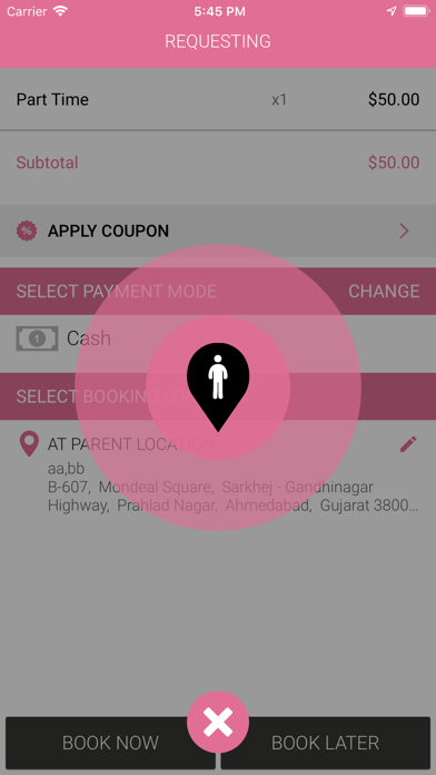 You can book Baby Sitting Service like Day care, Mother's Helper etc... on demand through our app. You can book it now or for later time. Work Flow: 1) Select the category of service (i.e Day Care, Mother's Helper etc...) 2) Choose the provider (i.e Baby Sitter) 3) Choose the services of selected provider 4) Select payment option 5) Checkout and wait for provider to serve at your location 6) You can track all these activities from the application
