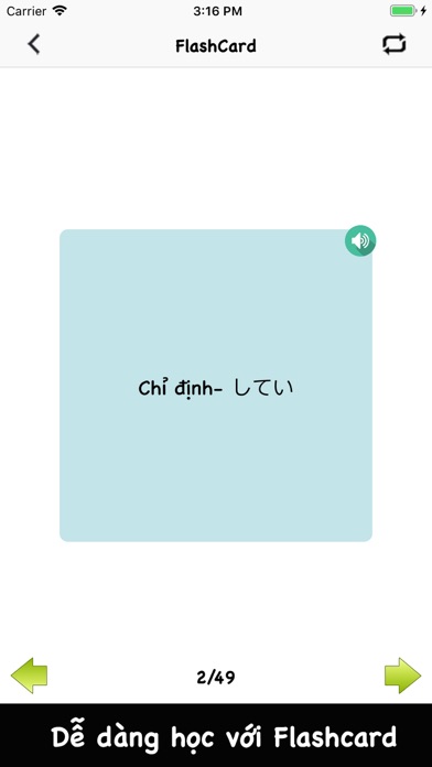 "Kanji N3" Là ứng dụng tổng hợp Kanji n3 theo chủ đề. * Được chia làm 6 tuần học, mỗi tuần sẽ có 6 buổi học Kanji theo giáo trình somatome rất dễ học. * Phần học bằng Flashcard: Cách học thừơng được sử dụng là học theo flashcard mà các bạn đã biết, các từ sẽ được xáo trộn nên sẽ làm bạn tăng khả năng nhớ hơn là so với cách học tuần tự. * Phần Test: Mỗi phần đều có bài test riềng. Sẽ chia làm 10 câu, và bạn phải nhớ và chọn đúng đáp án của câu đó. Chúc các bạn học và ôn thi tốt. Hãy ủng hộ chúng tôi nhé .