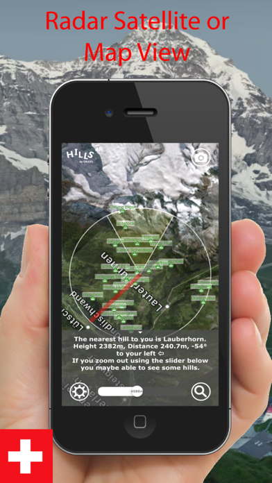 Switzerland Hills AR is an Augmented Reality Viewer for finding hills and mountains around you on you cameras screen when in Switzerland. It includes an uinteractive 3D Map, distance depth slider, search function, information display and camera to take photos or videos of your scenes. Simple to use, fast to start, informative to learn and adding loads of fun to your outdoors adventures! This version covers the whole of Switzerland and contains information on some 10,000 hills, mountains, peaks, slopes and valleys. All the Swiss region is covered by the APP including the Swiss/Central Plateau (Schweizer Mittelland/Plateau Suisse/Altopiano Svizzero), Jura Mountains ( Massif du Jura/Juragebirg/Massiccio del Giura) and the Swiss Alps (Schweizer Alpen/ Alpes suisses/Alpi Svizzere). Please be sure to also check out our other Hills AR Apps including the USA, UK, France, Austria, Italy, Spain and Germany. Switzerland Hills AR Enjoy and Please Rate and Review our App!