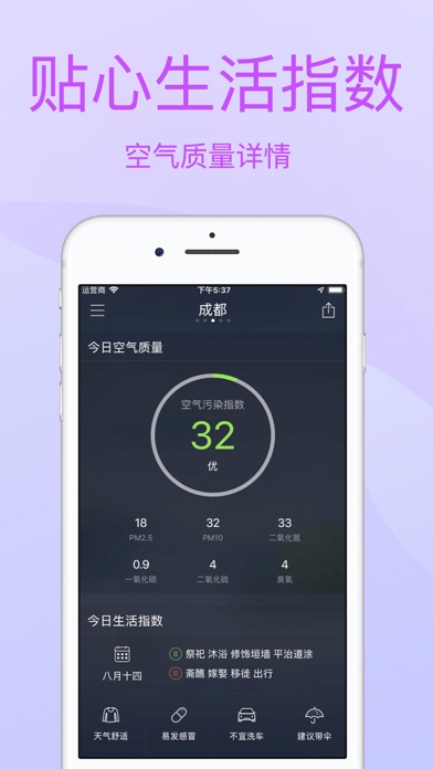 天气预报-未来天气预报实时天气监测是一款界面简洁精美,数据权威可靠的的天气app。 **** 精美的天气界面,栩栩如生的天气动画。 **** 实时天气实况,数据精准权威。 **** 24小时全天逐时天气预报,提前知晓,防范天气变化较大。 **** 15天未来天气预报,天气变化,温度趋势,空气质量,尽在眼底。 **** 支持全国三千多个城市地区的天气信息。 **** 支持全国各大旅游景点的天气查询,出门旅游必备。