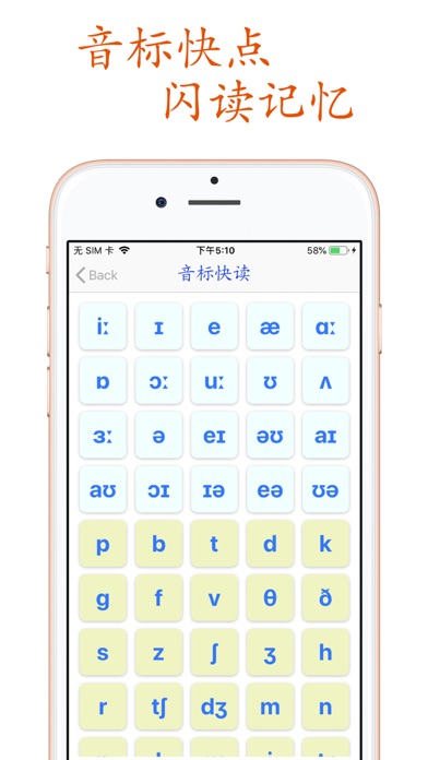 这是一款学习英文字母和音标的,助你语音起飞的App。 专家证实,英语发音是可以自学的,但无近路可抄,捷径,就是不走弯路。 语音学习,要有优质标准地道的语音素材作为范本,注意辨音对比,然后持续反复的跟读模仿,认真坚持,效果自然涌现。 这是一款学习英文字母和音标的,助你语音起飞的App。 - 范本 优质的地道的标准语音范本 - 方法 字母入手兼顾自然拼读发音方法 - 技巧 为每个音素提供图示的发音技巧 - 例词 为每个音素精选范音例词 - 对比 对语音学习者易混音进行全方位的比对,帮助学习者进行辨音训练 - 测试 用测试找出你语音上的缺陷,及时更正,不走弯路 - 快读 快速的字母,音标点读,用正确的音源快速刺激大脑,从而有效地纠正发音,加强记忆效果 - 训练 通过英文绕口令的跟读模仿,比对,训练英文口腔肌肉 - 总结 发音理论和技巧总结 ------------------ [email protected] ------------------ 更多功能有序开发中,您可发送邮件给 [email protected] 来反馈、吐槽;你想要的功能,就在一下个版本中。