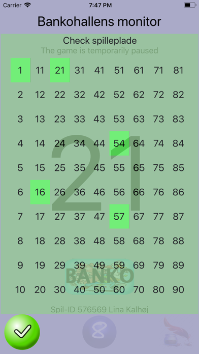 Bankohallens Monitor lytter til Bankohallen som spiller spillet BANKO. Bankohallen har et unikt spil ID nummer som sendes til spillerne ude hvor de sidder. Indstil dette spil ID nummeret på Bankohallens Monitor, så spiller du det spil og kun det spil som spil ID nummer er. Det er et lille Chat forum hvor kun spillere med samme spil ID kan skrive sammen. Du kan se allerede opråbte numre for at kontrollerer din spille plade.