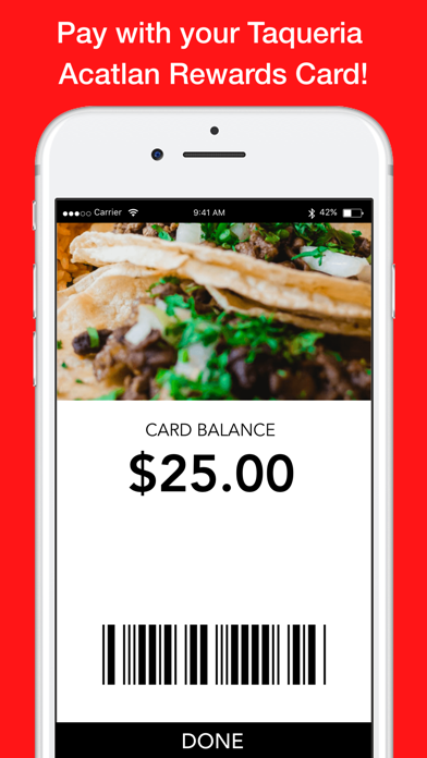 Taqueria Acatlan mobile app allows you to place orders and earn rewards! No need to wait in line, you can order from your phone and just pick up! Get notified when new promotions are available!