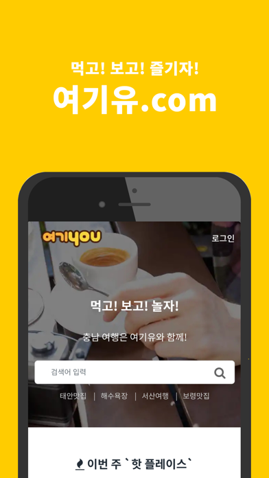 Let’s go 전국여행다님길 충청 서해안지역 여행정보 모바일 어플리케이션 “여기유”는 서해안의 여행지를 중심으로 먹거리, 숙박시설, 레저, 체험, 가볼만한곳 등의 다양한 시즌, 지역별 테마여행정보를 제공합니다. 이용자가 가려는 곳의 주변 여행지와 숙박, 먹거리를 비교, 분석할 수 있는 추천정보 제공과 여기유 제휴업체 할인쿠폰 발급으로 할인을 제공하고 있습니다. 충남 5개 지역 태안, 서산, 당진, 홍성, 보령 여행 가이드 다양한 정보가 가득한 여행 가이드를 만나 보세요. 맛집어플 따로 숙박어플 따로~ 따로따로는 이제 그만~! 충남 여행 가이드는 여기유~ 알았지유~! 내 주변 맛집, 관광지 탐색 갈팡 질팡 소중한 시간을 검색하는데 낭비하지 마세요. 다양한 테마별 맞춤 정보를 한눈에 똭! 소개해 드립니다. 어딜가도 리뷰가 답! 검색하고 리뷰찾고.. 이제 STOP! 검색한번에 다양한 블로그 리뷰까지 보여드립니다. 각 지역별 축제및 행사도 한번에 매월 다양한 문화축제및 지역별 행사를 테마로 소개해 드립니다. 꼭꼭 챙지자! 쿠폰할인! 믿고 보는 여기유 추천 테마 여기유에서는 발빠른 정보 업데이트와 엄선된 추천 정보들로 다양한 테마를 소개합니다. 주요기능 1. 지역별 / 시즌별 다양한 여행테마정보 제공 2. GPS를 통한 여행지, 먹거리, 숙박, 가볼만한 곳에서 나와의 거리를 계산해 내 주변업체 검색기능 3. 업체에 대한 상세한 설명과 함께 블로그 리뷰까지 한 번에 확인할 수 있도록 네이버 블로그 리뷰 API제공 4. 직접 발로 뛰며 수집한 다양하고 믿을 수 있는 현지 여행정보 수록 5. 한국관광공사에서 제공하는 API를 연동해 믿을 수 있는 여행정보 수록 6. 여기유 제휴업체 할인쿠폰 발급을 통한 할인제공