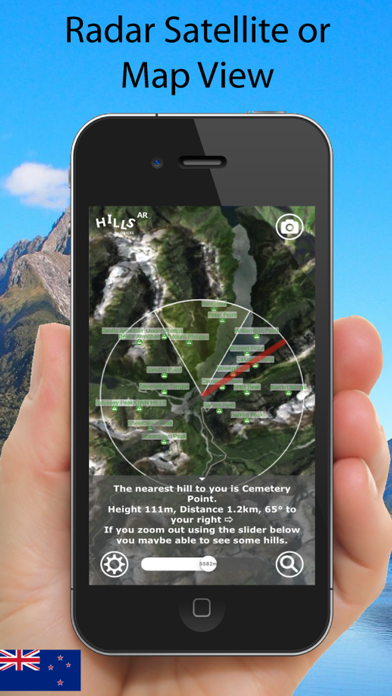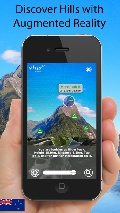 New Zealand Hills AR is an Augmented Reality Viewer for finding hills around you on you cameras screen. It includes a 3D Map, distance depth slider, search function, information display and camera to take photos or videos of your scenes. Simple to use, fast to start, informative adding loads of fun to your outdoors adventures! It covers the whole of New Zealand and contains information on some 15,000 hills, mountains, peaks, slopes and valleys - along with a few prominent islands when in coastal areas. The region covered includes both North and South Islands and of course the Southern Alps with mountains such as Mount Cook, Mount Tasman, Mount Dampier, Mount Sefton and Magellan, to name but a few, visible. If you like, then you can also check out our other Hills AR Apps on the App Store including the UK, USA, France, Austria, Italy, USA and Germany. New Zealand Hills AR Enjoy and Please Rate and Review our App!