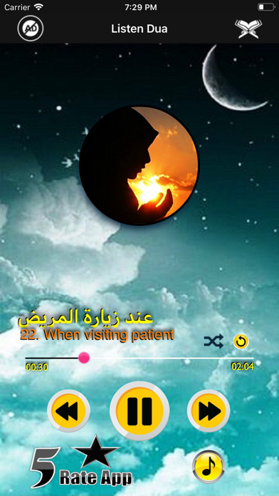 Learn everyday du'a and Azkar. This app works offline. تعلم الدعاء اليومي والأذكار. هذا التطبيق يعمل بدون نت Everyday Dua & Azkar mp3 Collections of Dua for all occasions Also hisnul muslim in English and Arabic included so you can read and understand the meaning of the duas do3aa soudais Beautiful Islamic dua Islamic Duaa Dua Islam doaa iitk doaa mostajab doaa el safar do3aa al mostajab al istikhara do3aa zawaj gratuit douaa douaa islam mp3 sans internete doaa zawaj Thiker hisnul muslim athkar كتاب ذكر أذكار المسلم dua muslim Islamic Azkar Sunnah Hadith doaa doaa el istikhara doaa al istikhara in arabic ad3ia do3ae ad3ia mostajaba adkar azkar do3ae mostajab do3ae rizk do3ae every day douaa Download this free dua & Azkar Islamic app to learn very important duas that you need. You will find the following duas in this adhkar and dua app: - Dua before eating - Du'a after eating - Dua before entering the toilet or bathroom - Du'a leaving the toilet or bathroom - Dua leaving home -Du'a entering home - Dua wearing and removing clothes - Supplication dua to relieve worries and stress - Dua for your studies and exams - Dua Istikhara - Du'a entering the mosque - Du'a leaving the mosque - Dua to say after Azan (prayer call) - Azkar when waking up from sleep - Prayer for traveling - Islamic dua before reading The Qur'an - The master of forgiveness (Dua Sayyidul istighfar) voice of sheikh Mishary Rashid al-Afasy - Dua'ul istighfar - Morning Azkar - Evening Azkar - Supplication when visiting patient - Dua Nightmares - Night prayer dua - Dua after you finish your ablution - Dua to say before entering cemetery - Du'a al Qunoot (Dua Qunut) - Du'a to say during rain - Dua to say for Iftar (breaking the fast) at sunset during Ramadan - Dua Qunoot by Sheikh Al Sudais - Dua to say to become pious and guided servant of Allah - Friday jumuah Dua by Sheikh Sudais - Dua'u Ibrahim (The prayer of prophet Abraham) to seek Allah's help and guidance to make you establish the prayer (i.e somebody who pray on time and everyday). - Dua by sheikh Abdur Rahman Alsudais. If you like this daily du'a and azkar app please consider leaving a positive review for it in the store and please consider sharing with others. Thank you for checking out my dua & azkar app. Dua & Azkar Daily Dua & Azkar Download this free daily dua & Azkar Islamic app to learn very important duas that you need. This application about Daily Dua & Azkar is offline completely free. adkar al muslim gratuit adkar sabah wa massa gratuit adkar moslim adkar adkar sabah adkar masa ramadan doaaDouaa el kounout doaa mostajab doaae anachid islamia gratuit Douaa el kounout ro9ya char3iya gratuit ro9ya char3iya Islamic Duaa