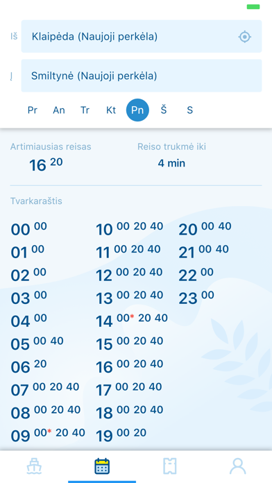 Smiltynės perkėlos programėlė – tai Informacijos šaltinis, kuriame rasite keltų maršrutų tvarkaraščius ir kainas. Taip pat tai įrankis, kuriuo pėstieji galės įsigyti bilietus. Tvarkaraščių informacija Jūsų programėlėje atsinaujins automatiškai, tad net keltams plaukiant be grafiko, apie tai bus pranešta. Jūsų patogumui taip pat galėsite: • matyti Naujosios perkėlos maršruto Klaipėda-Smiltynė-Klaipėda tvarkaraštį ir kainoraštį; • matyti Senosios perkėlos Klaipėda-Smiltynė-Klaipėda tvarkaraštį ir kainoraštį; • stebėti tiesioginę transliaciją iš perkėlų; • stebėti pranešimus, kai keltų darbas nutraukiamas dėl oro ar kitų ekstremalių sąlygų.