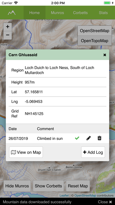 A companion to www.munromap.co.uk. This app shows lets you log your Munro and Corbett bagging count and helps you quickly see which hills you've climbed, and how close you are to completing all the mountains. It also gives details about every Munro and Corbett such as height, grid ref etc.