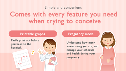 The app informs you of your chances of becoming pregnant by taking your basal body temperature both on a chart and calendar. Its simple controls encourage you to keep recording every day when you are still groggy in the morning. [Basal body temperature graph] Easy to view your basal body temperature. - Pinch in and out to zoom - Horizontal view (Full screen graph) [Calendar] Track your daily records and check your future schedule on the calendar. - Best chance of getting pregnant - Future period dates [Output of the basal body temperature graph] This feature is useful for when you show someone your graph or display on an iPad. - Support photo, email, AirPrint, and so on [Simple to record your basal body temperature] "Morning alarm" function allows you to jump to the input screen from the iPhone's lock screen in order to make it easier to record even when you are still sleepy in the morning. [Passcode protection] Set a password for maximum security. Password requirement can be removed when you are home. [Data backup] [Remove ads] Remove the ads from the settings menu. Keywords basal body temperature, graph, pregnancy, pregnant, calendar, free, ovulation, period, record, woman, condition, baby, conceive