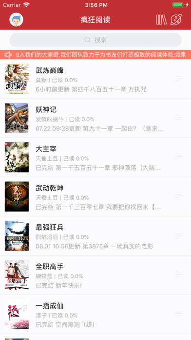 千万读者选择的疯狂阅读,拥有海量千万小说,了解一下? 打开即可畅读,畅享千万小说! 全网最快,全本小说实时更新! 种类多多,聚合最丰富的优质小说! 个性推荐,只看全网最新最热门的小说! 版本特色: 【海量书库】百万原创精品小说,带你终结书荒,从此不无聊; 【光速更新】众多名家大神新作快速更新,精彩永不迟到; 【经典网文】《盗墓笔记》 《斗破苍穹》 《全职高手》 《斗罗大陆》 《沙海》更多经典小说等你看; 【精彩小说推荐:劲爆、热门、冷门、黑马小说推荐,让你追书追不停!】 「高分佳作」热门完结、高人气值好书、实时热搜、百万人在看、老书虫推荐,只把最好的给你! 「猜你喜欢」热血玄幻、甜宠虐恋、悬疑灵异、搞笑........比你自己更懂你 「最火爆」海量人气佳作,只给你最火爆的小说! 【男女频道:专属男生、女生的不同阅读空间】 「男频」龙血战神剑斩八荒,诡域档案尽是人间异事,穿越时空制霸三国,网游世界王者归来,男生必入; 「女频」萌宝来袭甜宠无极限,爱如繁星唯美言情,穿越时空废柴逆袭,女生爱不释手;