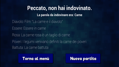 Riuscirai ad indovinare le 5 parole corrette tra le coppie proposte? E non è finita qui! Con queste 5 risposte dovrai riuscire a trovare la parola collegata a ciascuna di esse (chiamata la ghigliottina). La ghigliottina, il solo quiz ispirato al celebre programma televisivo italiano! Per vincere in questo gioco, non è necessaria solo la conoscenza, sono fondamentali anche scaltrezza ed intuito. La ghigliottina, il gioco a quiz unico nel suo genere è disponibile in Italia ora. Trovare tutte le risposte corrette, accresci il tuo montepremi accumulato e diventa milionario (virtualmente incrementa il tuo montepremi). Le regole del gioco della ghigliottina sono semplici: Vengono proposte per 5 volte una coppia di termini. Per ciascuna coppia scegli uno dei due termini cercando di individuare quello giusto. Se la scelta è giusta, il montepremi rimane intatto, altrimenti viene dimezzato (effetto ghigliottina). Trovati i 5 indizi giusti, inserisci la parola che si lega a ciascuna di esse e controlla di aver vinto la ghigliottina! Non ti preoccupare se non ti viene in mente, richiedi liberamente un aiuto e vedrai che riuscirai a trovare anche le parole più difficili :) La ghigliottina è un gioco quiz gratuito e a solo scopo ludico. Non intende ledere nessuno e nessun marchio ad esso connesso. Nessun copyright. Tutti gli altri marchi e nomi commerciali sono di proprietà dei rispettivi detentori.