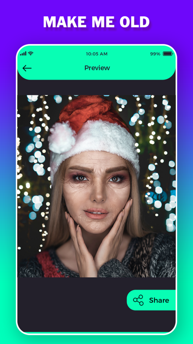Want to look your face into old age..? Use this awesome "Age Predictor" app which is allow option to get fast face change look. App with not only old look but application allows users to change into different age faces. "Make me Old : Old Ageing Face" app to change your look into old age face through your smart phone. Application allows users to change instant face into old face. Make me Old : Old Ageing Face is one of the best old aging app with which you can look your face into different ages face with animation. It is simple and easy to use by every peoples, Just select your wish image from mobile gallery and set proper mask to get perfect old age. Choose one of your wish ages from option and get old face instant preview. Share your scary faces on social media to get review that how you look in this face. -----------One touch to change your look into different ages...-------------- +20 +40 +60 +80 +90 HIGHLIGHTS Create old your face & share it with your friends Change face into different ages Oldify your face Friendly interface Oldify your face with one-touch Get chance to change your face into younger age Get face aging change option into different Years Instant to get preview One tap to share on social side Save all images into creation folder FREE! Simple to use Reliable to use Simple to save and share with anyone