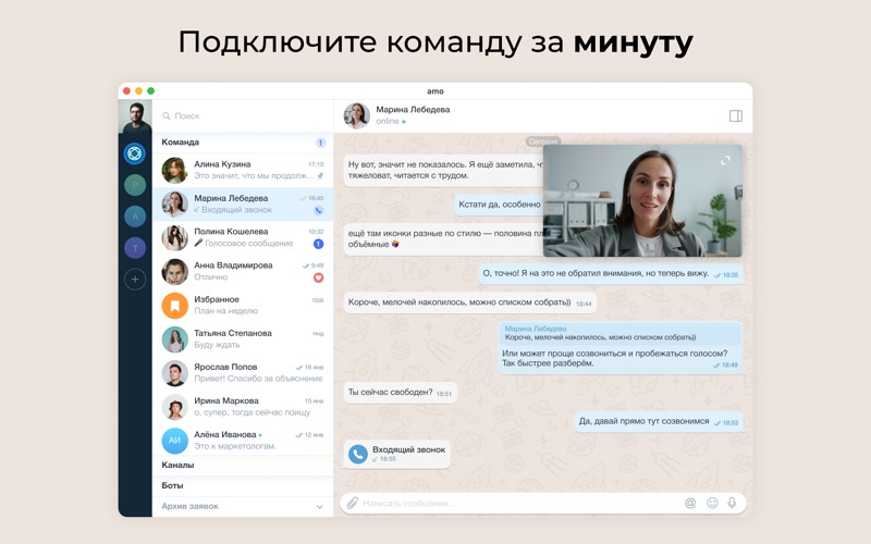 Представьте идеальный мессенджер. У вас есть несколько направлений работы, разные проекты, команды и все это в одном мессенджере. Больше не придется устанавливать разные программы для общения с вашей командой, вы больше не потеряете информацию и файлы. И это возможно с amo | корпоративный мессенджер. amo | корпоративный мессенджер - это приложение, которое позволит вам общаться со всеми вашими коллегами в одном месте. С помощью приложения вы сможете приглашать ваших коллег в аккаунт, общаться с ними в директ-чатах, создавать групповые чаты. В приложении нет больших и сложных функций, его преимущество в простоте и удобстве использования. Установите бесплатное приложение и переходите на новый уровень коммуникации с вашей командой!