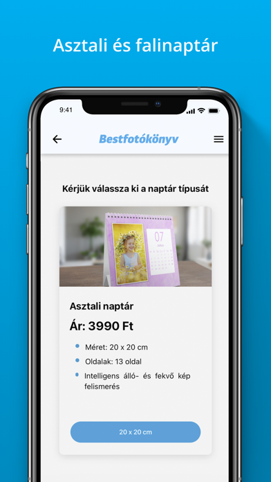 BESTFOTÓKÖNYV ALKALMAZÁS Szerezz örömet szeretteidnek és magadnak a Bestfotókönyv csodálatos fotókönyveivel. Közvetlen egyszerű rendelés telefonos alkalmazáson keresztül. Néhány egyszerű kattintással maradandó emlékké varázsolhatod fotóidat. KIVÁLÓ MINŐSÉG Csakis magas minőségű, színvonalas fotókönyvek. - Valódi fotópapír - Síkban nyíló oldalak - Egyedi fotós borító BESTFOTÓKÖNYV A Bestfotókönyv 2010-óta gyárt fotókönyveket és egyedi naptárakat. - Magyarországon gyártjuk - Néhány nap alatt kiszállítjuk - A Westend Bevásárlóközpontban átvehető, megtekinthető FÉNYKÉPES NAPTÁRAK - Valódi fotópapír - Asztali és fali kivitel FOTÓFELTÖLTÉS SZÁMÍTÓGÉPES SZERKESZTÉSHEZ Ha számítógépen szeretsz fotókönyvet szerkeszteni, az alkalmazás egyszerű megoldást kínál a fotók feltöltésére. Lépj be a Bestfotókönyv fiókodba az alkalmazáson belül. Hozz létre egy mappát, majd telefonodról töltsd fel a fotókat. Ha számítógépen is belépsz a Bestfotókönyv fiókodba, ott lesz az új mappa benne pedig képek. ÜGYFÉLSZOLGÁLAT Bármilyen kérdésed felmerül az alkalmazás használatával kapcsolatban, írj email-t az [email protected] email-címre.