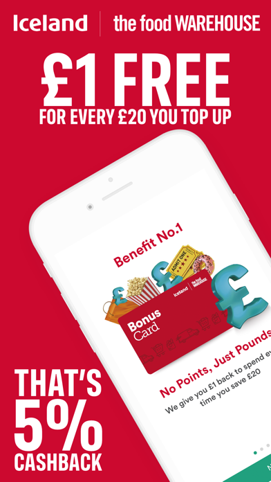 With the Iceland groceries and Bonus Card app, it's never been easier to do your food shopping and make savings. Get discounts and cashback, track your orders and even receive exclusive loyalty card deals. Sound good? Here are just a few more reasons why you should sign up for our not-to-be-missed supermarket app. Top-up, save and get bonuses As soon as you sign-up, you’re ready to top-up and start getting your rewards. Get £1 for every £20 you save – that's a massive 5% cashback! Plus, be in the chance to win exclusive monthly giveaways and prizes. Simply register and activate online – you don’t even need to go into a store. Never lose your card again How many times have you been asked for loyalty cards, only to realise they’re buried in your purse – or you don’t have them on you? You could be missing out on savings and rewards by not using your card. But now, with your Iceland Bonus Card on your phone, you will always have it readily to hand – allowing you to get the best deals and view your savings. Set a budget With the top-up option, you can also set yourself a budget – great if you're working on saving the pennies. Simply add money to your Iceland Bonus Card and use this to pay for your food shopping in-store and online. If you save £2 a week on your card, you could have over £100 in a year's time. View your Bonus Card balance at the touch of a button on your ‘My Bonus Card’ page. You can also hide your card’s balance from the cashier when you get your card scanned. Shop with ease Shop online with Iceland and track your orders within the food app. With all of your favourite items conveniently located in one place, you can simply add what you want to your basket – and easily view your order history and customer profile too. Once you've placed an order, you'll also be able to track its journey every step of the way, all within the app. Find your nearest store If you prefer shopping in-store, then you can also use the app to locate your nearest Iceland or Food Warehouse. Find stores on the map or in list format – and view the opening and closing times too. Free delivery As well as enjoying a range of discounts and deals with this Iceland food shopping app, get free delivery on instore orders over £25 and online orders over £35*. Terms and Conditions: - You must be 18 years old or over to register for a Bonus Card, and be a UK resident. - Only one card is permitted per person. - Bonus Card pricing is only for one week - six times a year. - *The minimum spend to place an order and have it delivered is £25. - It can take up to 48 hours for savings, bonuses and transactions to be recorded onto your Bonus Card. - The maximum amount of savings, which include any bonuses, allowed at any one time on a Bonus Card is £1,000. Once this limit has been reached, even if you are participating in a promotional offer, your Bonus Card may be capped by Iceland.