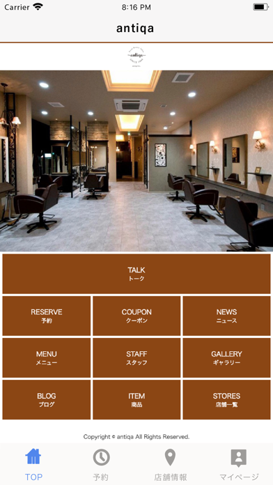 antiqa(アンティカ)の公式アプリです。 【概要】 ■アプリ上から24時間いつでも予約が可能 指名予約にも対応しているので担当スタッフのスケジュールを確認してからの予約が可能です。 ■クーポン お得なクーポンが配信されます。ネット予約時にクーポン利用での予約も可能なので来店時もスムーズに施術頂けます。 ■スタッフが施術したギャラリーを掲載 前もって画像を確認しておけばスムーズなオーダーが可能です。 ■マイページ機能 予約状況の確認やキャンセルがマイページ上から行えます。スタッフの登録が出来るので前もって担当者を登録しておけばマイページからスムーズな指名予約が可能です。