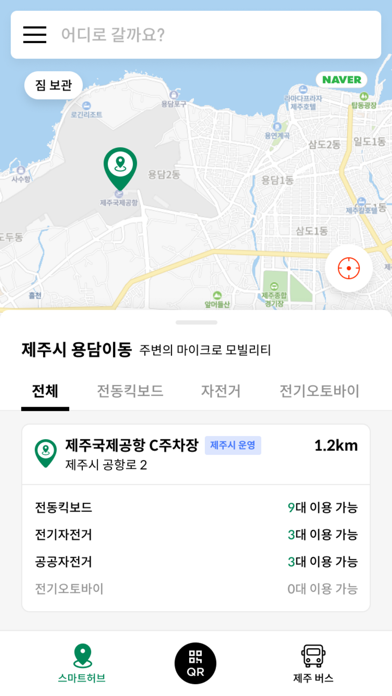 ■ 퍼스널 모빌리티 대여 "버스는 기다리기 싫고, 차는 없다면?" 내 주변에 있는 전기자전거, 전동킥보드, 전기오토바이를 확인하고, QR로 바로 대여해보세요. ■ 실시간 버스 정보 확인 "내 위치에서 가장 빨리 오는 버스는 뭘까?" 실시간 제주 버스 정보를 확인하고, 목적지까지 빠르게 이동하세요. ■ 내게 딱 맞는 경로 추천 "킥보드로는 목적지까지 몇 분 걸리지?" 버스, 전기자전거, 전동킥보드, 전기오토바이 어떤 것이든, 지금 이용하고 있는 이동 수단으로 목적지까지 최적의 경로를 알려드려요. ■ 제주 관광지와 편의시설 안내 "애월 해수욕장 근처에 짐 보관할 곳 없을까?" 내 주변에 있는 제주도 관광지와 짐 보관 서비스 장소를 확인할 수 있어요. [필수 접근권한 안내] - 위치정보: 사용자의 현재 위치가 지도상에 표시됩니다. 사용자의 현재 위치를 기반으로 버스, 공유 모빌리티, 관광지, 짐보관 장소 정보를 제공합니다.