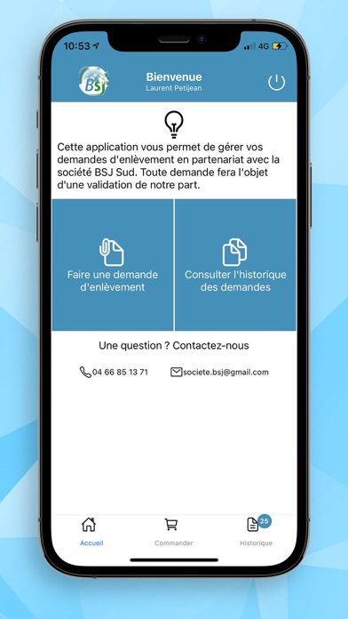 Cette application permet aux clients de la Blanchisserie BSJ de gérer directement leurs demandes d'enlèvement (effectuer une demande, voir l'état de la demande, l'historique des demandes...)