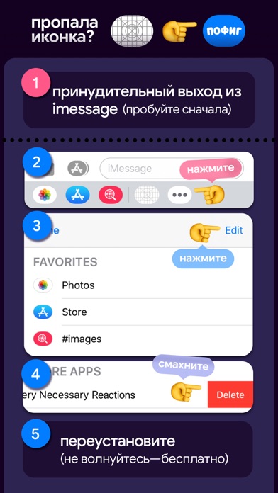 Давайте начистоту, встроенные реакции в iMessage прекрасны…если вы относитесь к разряду людей, у которых всего 6 чувств. Но я уверен, что вы более глубоки. Вам больше никогда не придется ставить скучные и устаревшие реакции вроде Ха-ха, сердечка или вопросительного знака. Отныне у вас есть уникальная возможность вооружиться исчерпывающим набором реакций на все случаи жизни. Сделайте ваши переписки более живыми, настоящими и забавными благодаря русской версии Very Necessary Reactions.