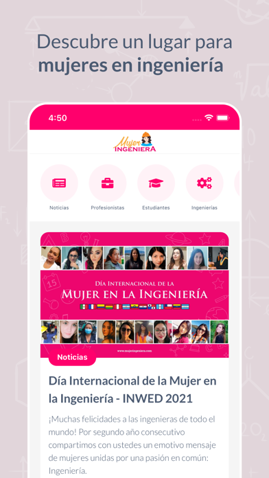 Amiga Ingeniera, nuestra comunidad se fortalece y ¡Hemos llegado a iOS! Esta aplicación ha sido desarrollada especialmente para ti y nos permitirá estar más conectadas. Encuentra aquí todo el contenido de www.mujeringeniera.com: Noticias, historias, información relevante para profesionistas y estudiantes, tips y más cosas que solo se pueden vivir cuando una mujer decide transformar al mundo con ingeniería. Inspírate con la frase del día. Esas frases que nos han conectado mágicamente en redes sociales, también las encontrarás aquí y podrás compartirlas fácilmente o guardarlas en tu dispositivo. Recuerda que lo más valioso de este proyecto, es poder conectar con mujeres como tú. Este espacio está abierto para compartir opiniones, aprender de las grandes e inspirar a las que se inician en este camino y deben mantener vivo el deseo de convertirse en la mujer que siempre quisieron ser. Si deseas compartir tu experiencia con más mujeres como nosotras, por favor no dudes en contactarme, aquí hay espacio para todas. Nunca olvides que el mundo te agradece por tu entrega, esfuerzo y dedicación para construir el futuro que todos queremos. Que nada te detenga, Mujer Ingeniera.