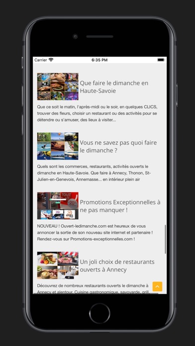Que faire le dimanche ? Quels sont les magasins ouverts ? Que faire en famille, avec nos enfants, en couple ou entre amis ? En quelques CLICS, trouver des fleurs, choisir un restaurant... Découvrir des activités pour se détendre ou s'amuser, des lieux à visiter... Ne pas s'ennuyer et passer de beaux dimanches ! 1/ Sélectionnez un dimanche 2/ Indiquez une commune 3/ Vous avez ensuite le choix de rubriques et sous rubriques : Commerces (alimentation - art artisanat - maison et déco - jardin fleurs - gaz carburant...) Activités (sport sensations - détente bien être - découverte - en plein air ou en intérieur) Sorties (restaurants - restauration rapide à emporter - spectacles - bars discothèques) Quatre pastilles (matin, midi, après midi, et soir), jaune pour ouvert, bleu pour fermé - et horaires d'ouvertures. Boulangers pâtissiers, fleuristes, restaurants, parcs de loisirs, vol en parapente ou en montgolfière... Bienvenue sur Ouvert Le Dimanche !