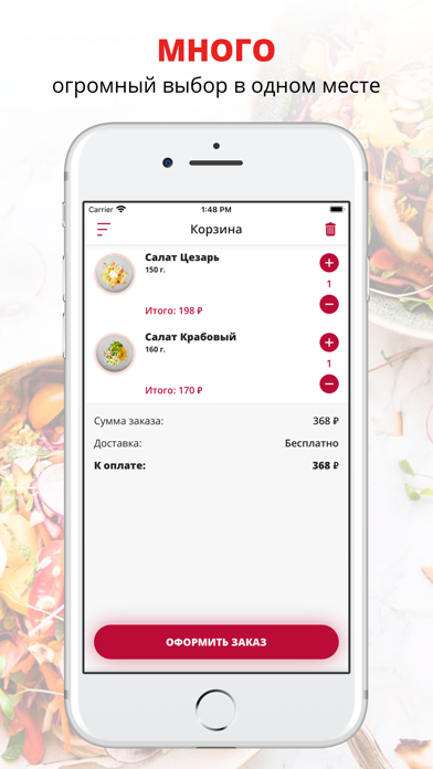Выбирайте и заказывайте вкусную еду с доставкой всего в несколько кликов-cделайте заказ, и его начнут готовить в ту же секунду! Горячие блюда, салаты и супы с бесплатной доставкой! Оцените всё удобство функционала: интуитивно понятное и разнообразное меню, удобная корзина и быстрое оформление заказа, выбор города и зоны доставки, выбор способа оплаты, личный кабинет с историей заказов, бонусы за регистрацию, промокоды, скидки, акции, уведомления о статусе заказа. Скачивайте наше приложение, оформляйте заказ и наслаждайтесь любимой едой, где бы Вы ни были! Приятного аппетита!