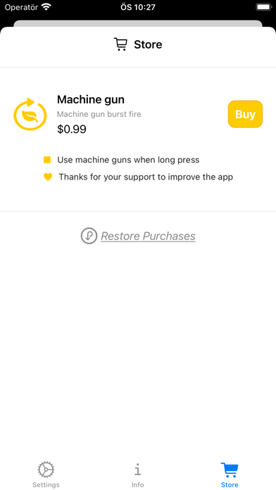 Shoot as many toy biplanes as possible in 45 seconds. - Easy? * Tap anywhere on your screen to shoot, * Your front site is the center of your device screen, * Biplanes can shoot at you but don't afraid. They cannot hit you till the next release... SPECIAL THANKS TO: (1) Biplane photo by Dirk van Wolferen, https://unsplash.com/photos/wFna77QtSi0 (2) German infantrymen, by britannica.com, Technology of war in 1914 https://www.britannica.com/event/World-War-I/Technology-of-war-in-1914 (3) Toy biplane, Apple AR gallery, https://developer.apple.com/augmented-reality/quick-look/ (4) Toy biplane 2, Lobke Van Gheluwe https://sketchfab.com/LobkeVGH (5) Biplane sound clips, by Youtube channel: Historical Machines FreeView https://www.youtube.com/watch?v=Vc2LjoXbX-c (6) Rifle sound clips, by Youtube channel: C&Rsenal https://www.youtube.com/channel/UClq1dvO44aNovUUy0SiSDOQ