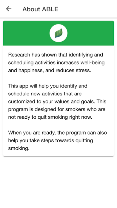 The program focuses on improving well-being and reducing stress by helping you identify your values, plan activities that are consistent with those values, and setting goals so that you spend more time doing things that are important to you. When you are ready, the program also helps you take steps towards quitting smoking.