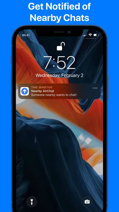 AirChat connects you to people nearby and allows you to send and receive chat messages over WiFi or Bluetooth. You'll receive a notification when someone opens the app near you! Perfect for situations when you have no internet connection, like on a plane or when travelling abroad. Messages are sent directly to each device, so your privacy is guaranteed.